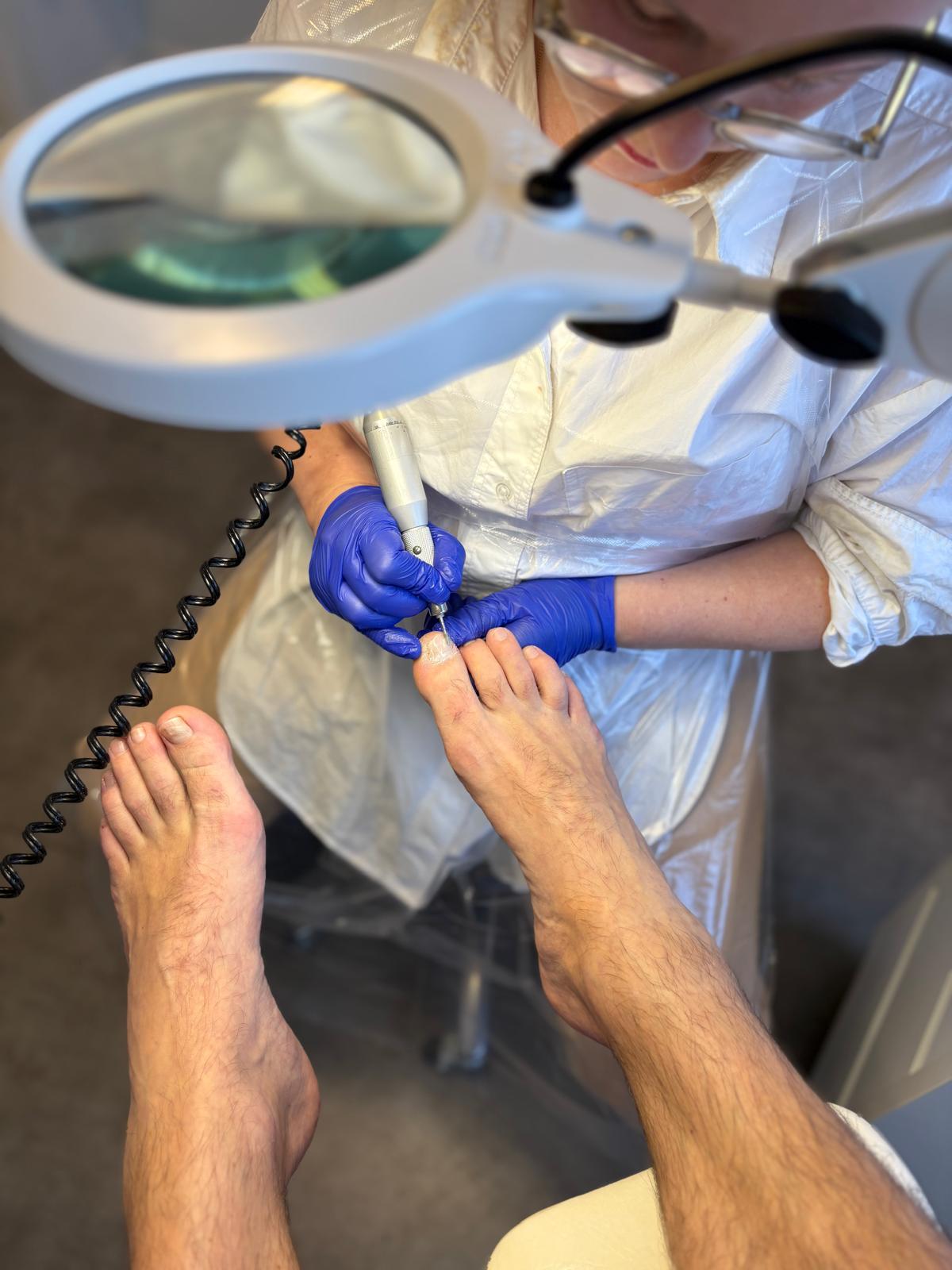 - Utförs av en utbildad medicinsk fotterapeut med rätt kunskap och sterila verktyg.
